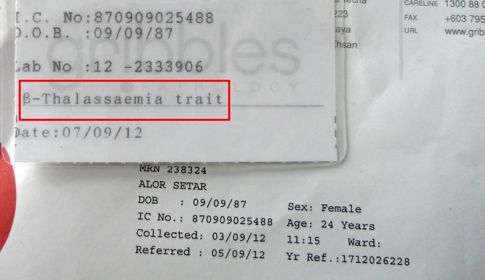 20/9/2012 NurNiz ke KMC untuk mengetahui keputusan ujian darah. Yang tak bestnya NurNiz merupakan salah seorang pembawa talasemia :(. Jadi, Doktor pun nasihatkan agar en. suami untuk menjalani saringan darah untuk talasemia gak. NurNiz tak pernah tau sebelum ni pasal alpha & beta talasemia. Info lanjut boleh rujuk kat sini dan sini. NurNiz diberikan kad supaya mudah ditunjukkan jika NurNiz membuat pemeriksaan di tempat lain.